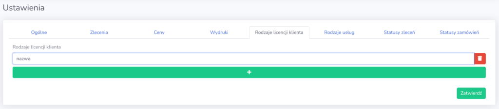 Zdefiniowane usługi przyspieszają dodawanie licencji klienta umożliwiając wybór typu licencji z listy.